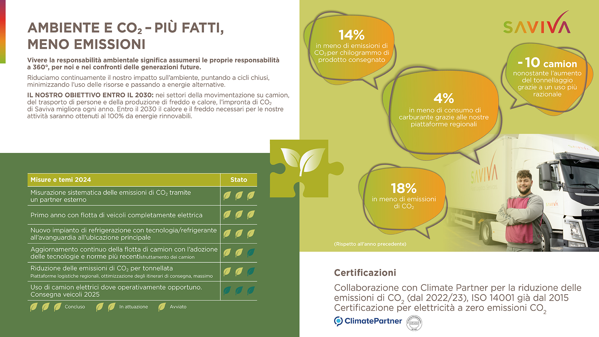 Per noi di Saviva, condividere i nostri sforzi e i nostri progressi in modo trasparente con il nostro ambiente è una questione di cuore. Nel rapporto di sostenibilità 2024 presentiamo gli obiettivi e i successi più importanti nei quattro campi di azione.